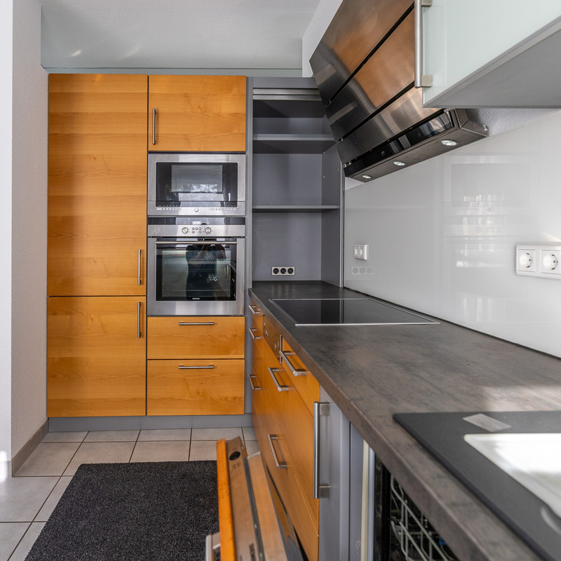 Neue, maßgefertigte Einbauküche mit hochwertigen Geräten.