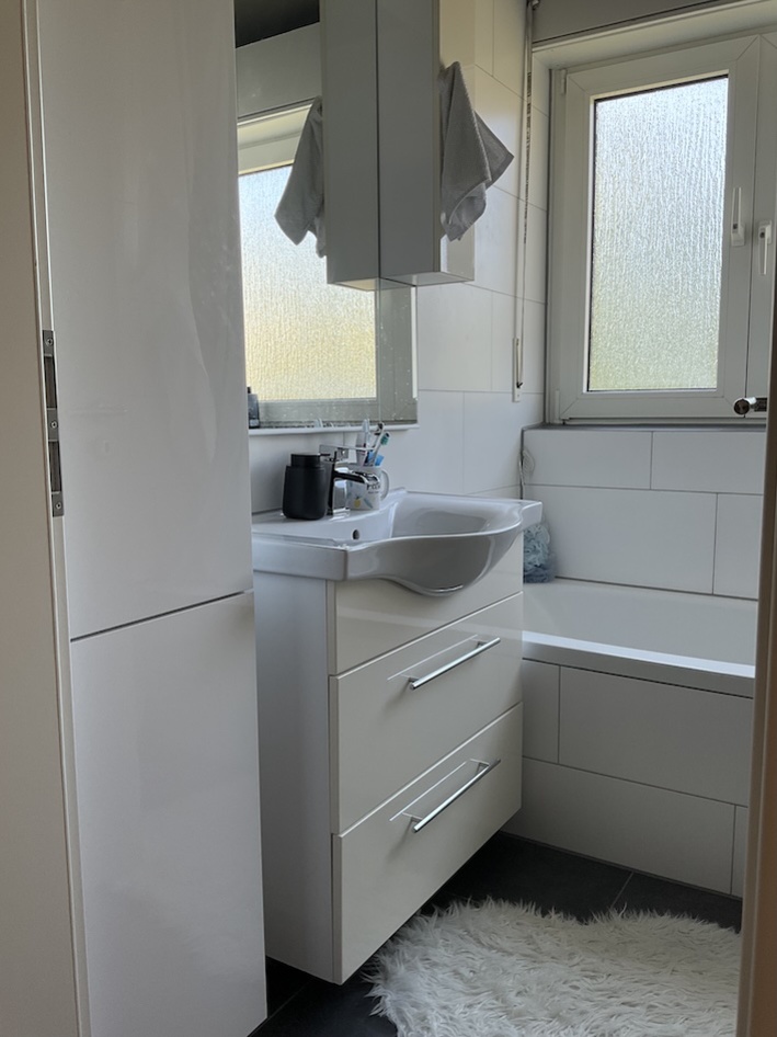 Rundumsanierung inkl. vollständiger Erneuerung der Stromleitungen, neuem Bodenbelag und modernem Bad (Sanitär, Fliesen etc.).